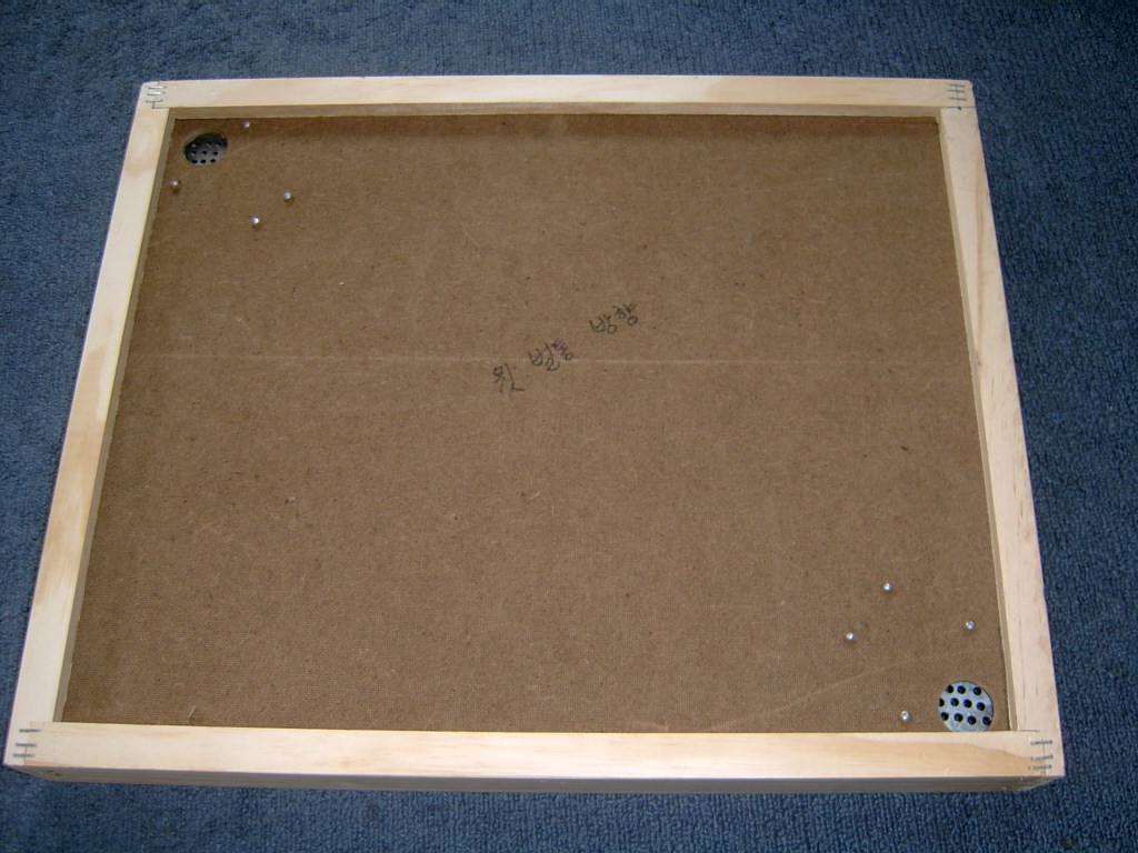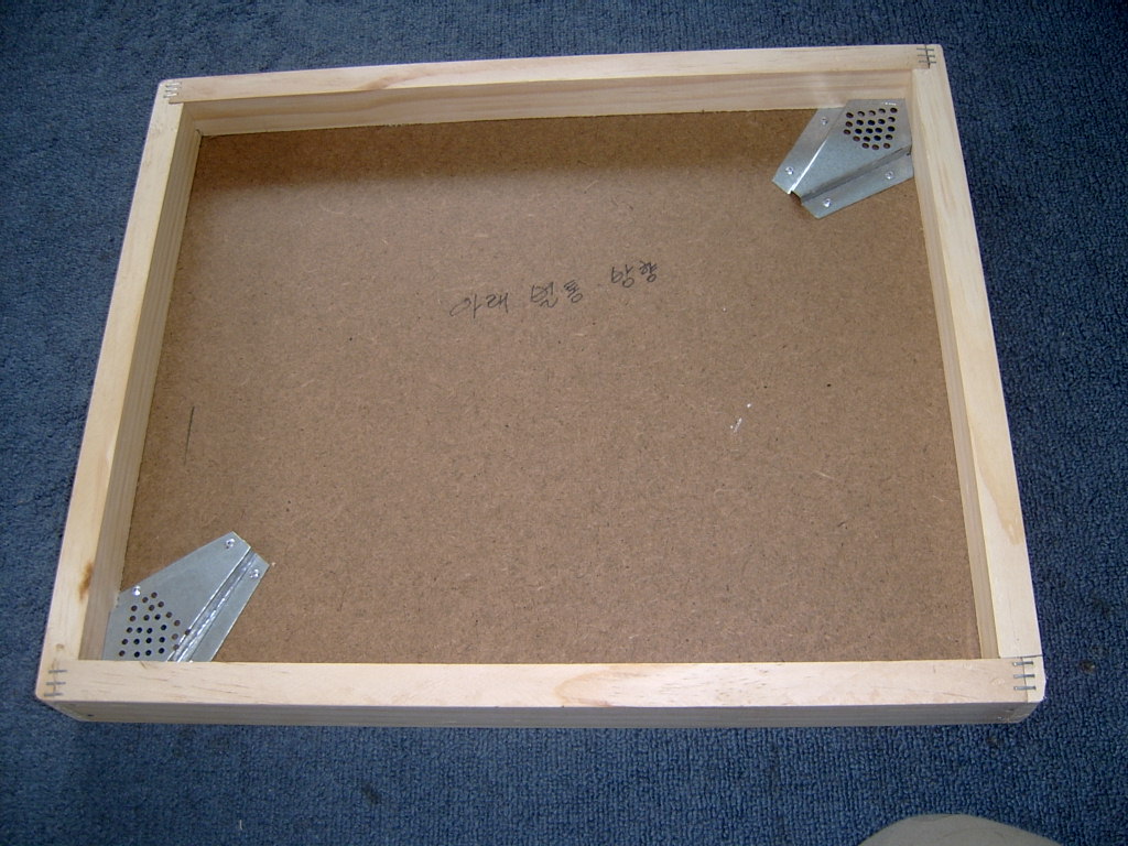 위에서 설명 한대로 위에서 내려오는 벌들이 함석 끝부분의 구멍을 통해 아래 통으로 내려언 벌들은 위로는 다시 올라 갈수 없는데